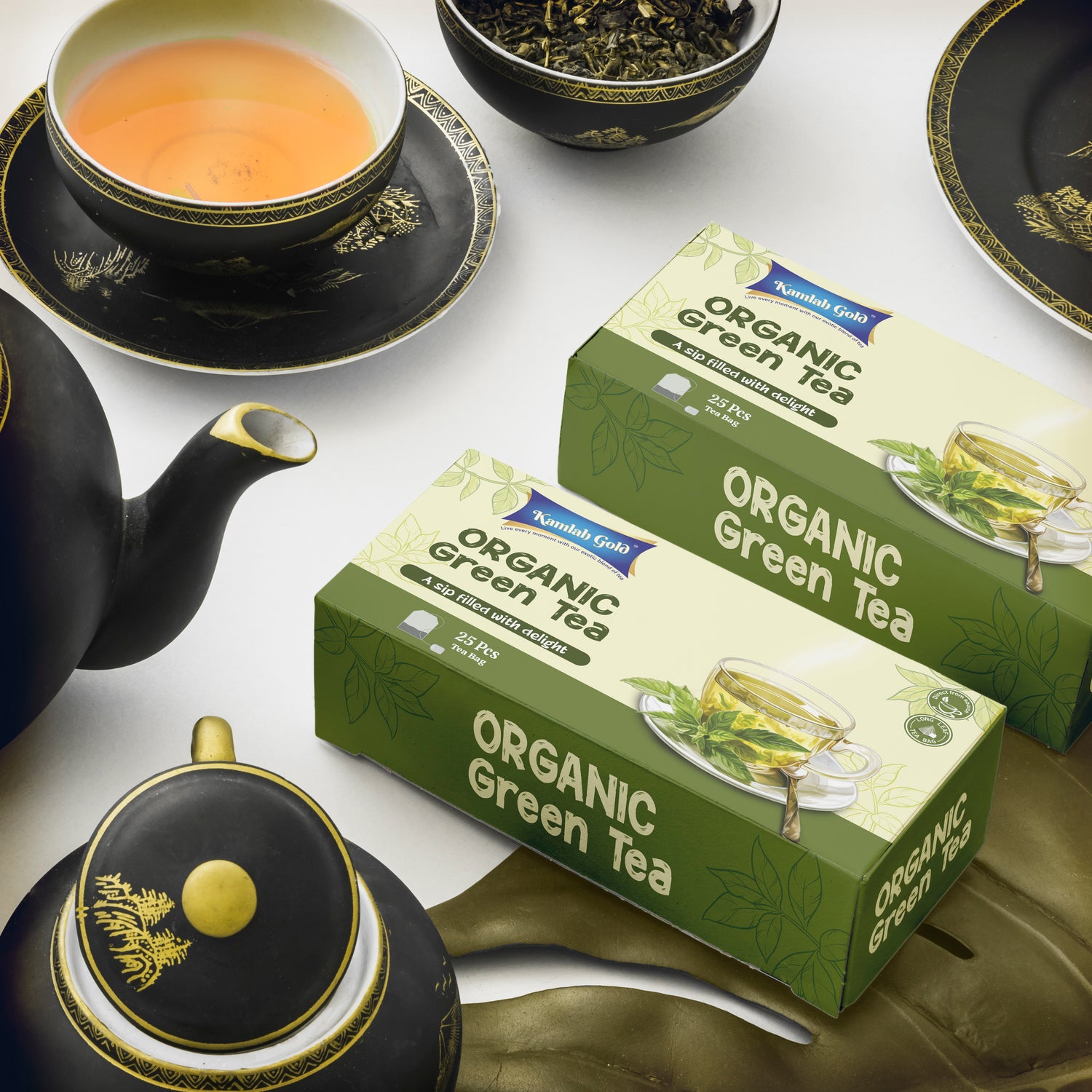 Experience the ease and excellence of KAMLAH GOLD premium tea bags, thoughtfully...
